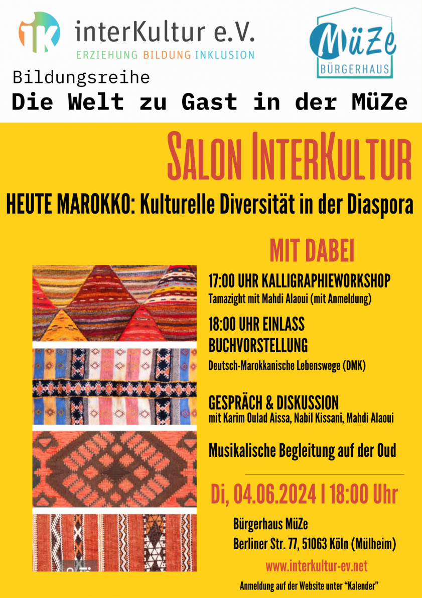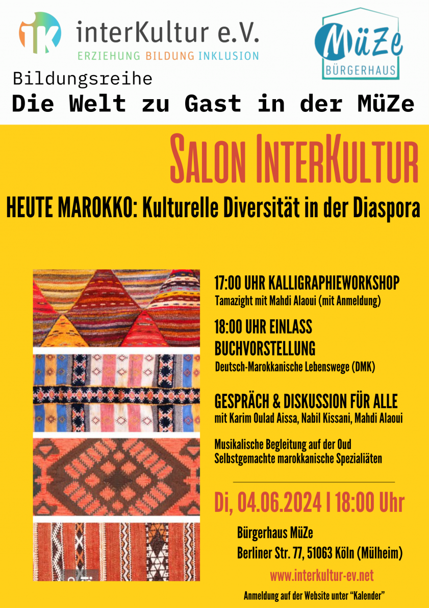 Anmeldung für die Veranstaltung: https://www.interkultur-ev.net/kalender/die-welt-zu-gast-in-der-mueze-marokko/